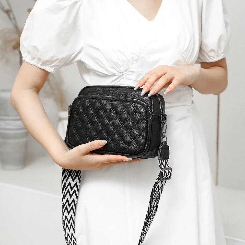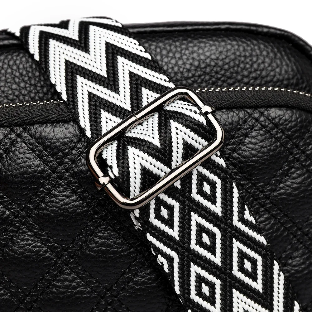 | (Black/Blue/White)--Quilted Shoulder Bag |